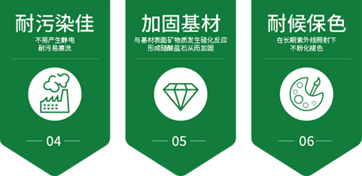 弗克風(fēng)?硅質(zhì)漆是單組分的水性無機涂料,采用無機硅酸鹽高分子復(fù)合技術(shù),優(yōu)選特種硅酸鹽材料、改性助劑,突破性地解決了乳膠漆耐黃變差、耐污性差、壽命短的缺點, 具有高耐候性和耐火性的健康型涂料特點。